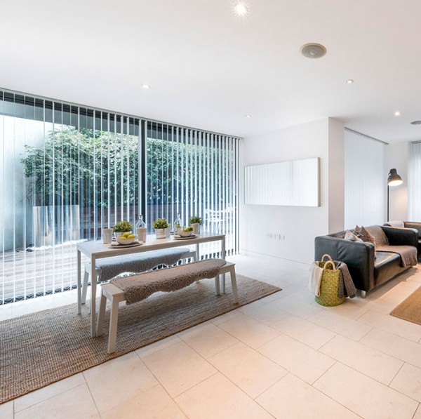 The clean lines of the glass and limestone of the exterior carry through into the apartments. Each one is finished with the highest quality natural materials. For doors, the subtle graining of walnut timber has been used, to catch the natural light coming through the floor-to-ceiling windows, creating a simple, warm feel to the interiors.